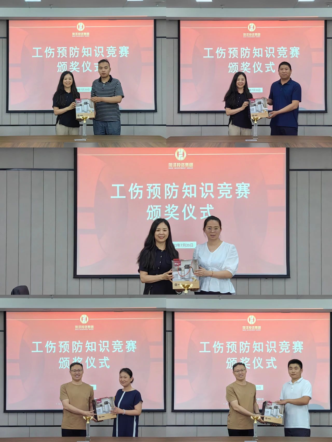 自2023年5月26日市人社局、市應(yīng)急局、市總工會聯(lián)合中國人壽舉辦“菏澤市工傷預(yù)防知識競賽活動”以來,菏澤投資集團積極參與競賽活動,經(jīng)過激烈角逐,集團榮獲“活動組織獎”,6名員工榮獲個人三等獎。7月20日,集團公司舉行頒獎儀式,黨委委員、副總經(jīng)理張新艷,工會主席孔慶凱為獲獎員工頒獎。