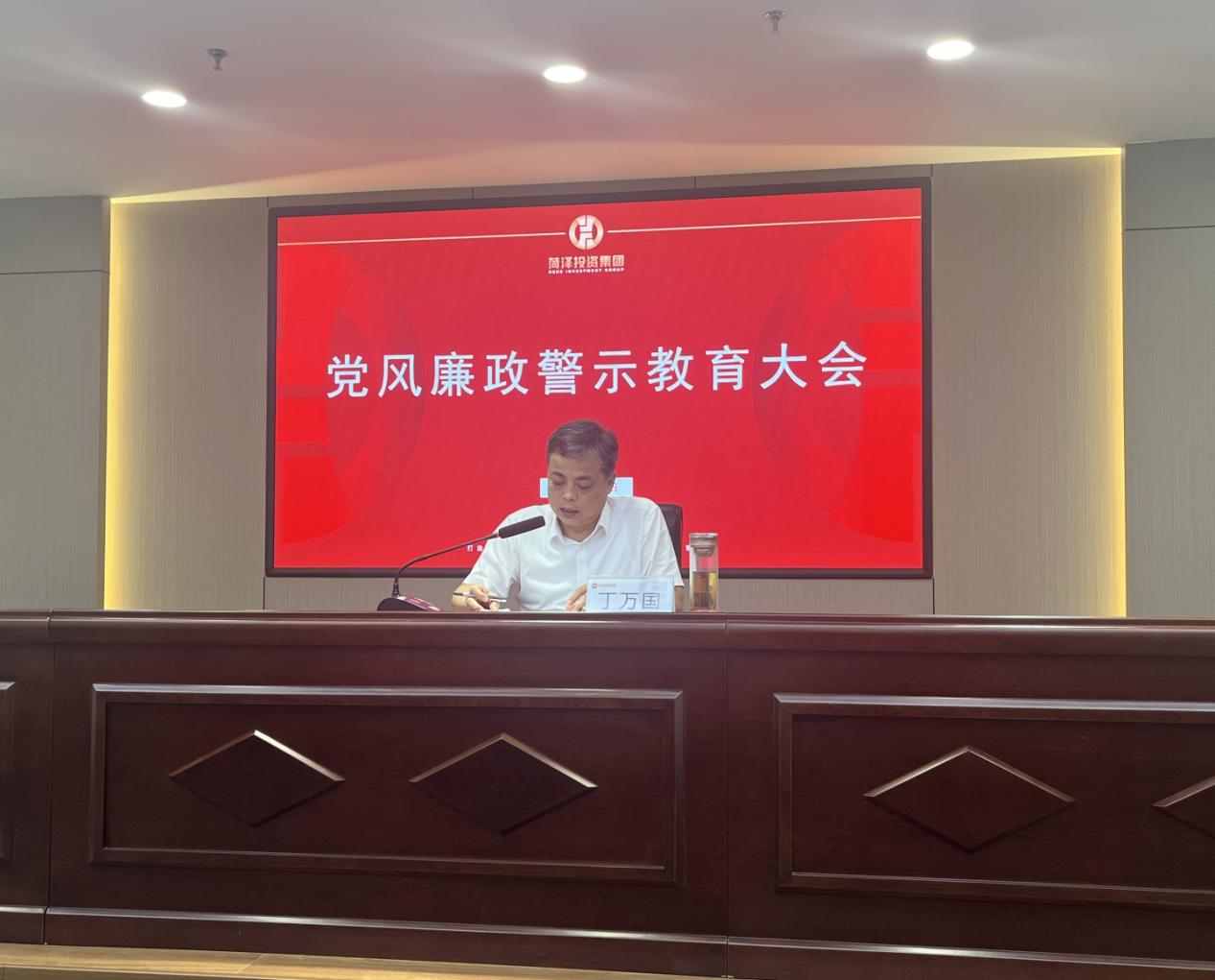 為深入貫徹落實全市黨風廉政警示教育大會精神,8月18日,菏澤投資集團在八樓第四會議室召開黨風廉政警示教育大會。集團公司市管干部,合署辦公機關副部級以上人員,各企業(yè)黨支部書記、副書記、班子成員及財務部、綜合部、安監(jiān)部負責人等100余人參加了會議。公司黨委書記、董事長丁萬國作重要講話,黨委委員、紀委書記陳蔚文主持會議。
