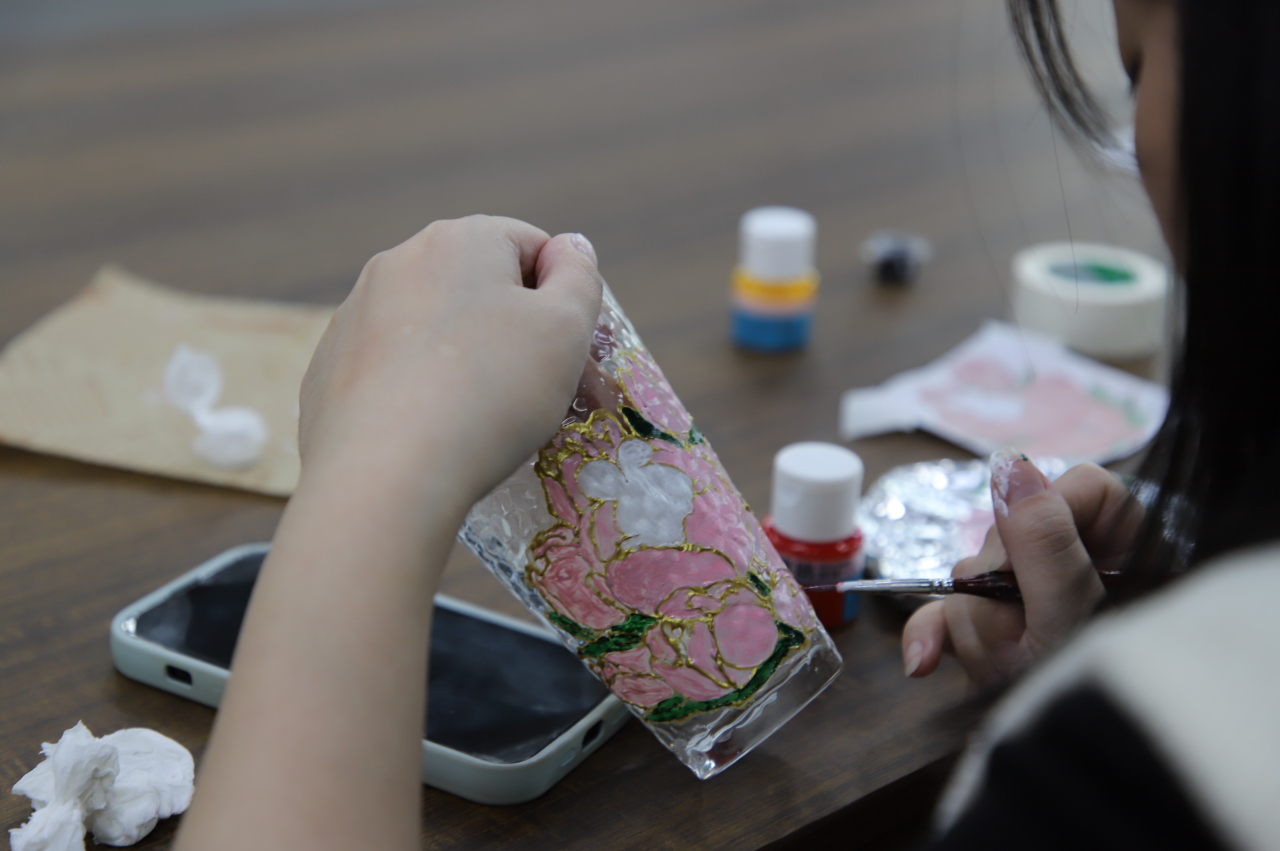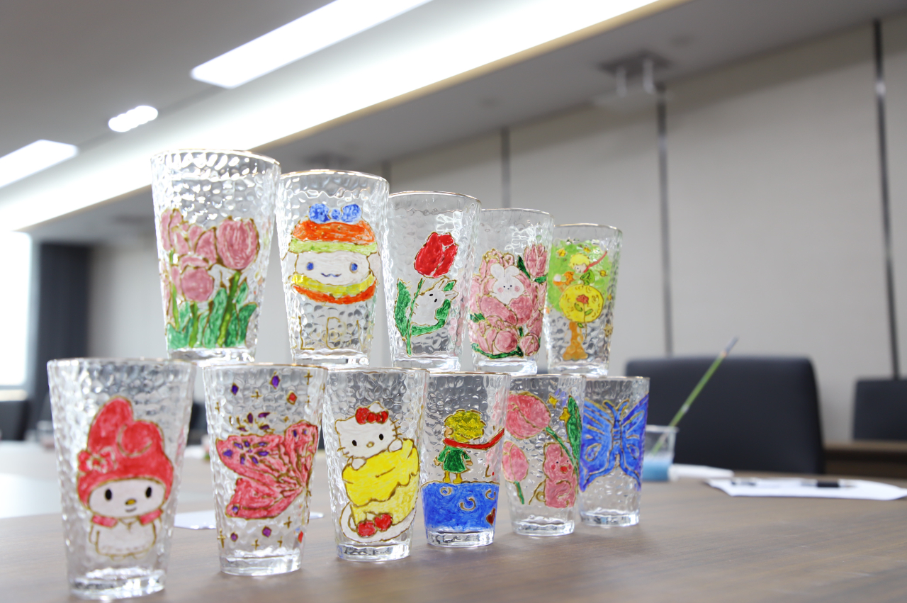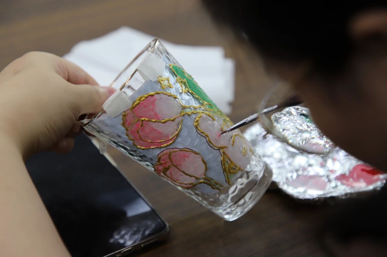 活動中,公司工會特邀請了專業(yè)老師為參與活動的女職工講解了手繪玻璃杯的制作步驟、注意事項和彩繪技巧,女職工們以玻璃為畫布,以興趣為靈感,在老師的指導下,盡情發(fā)揮想象,各自選定彩繪主題,提筆用玻璃專用顏料勾勒出一幅幅花卉、動物圖案,現(xiàn)場每個人都投入在藝術(shù)創(chuàng)作中,小小的玻璃杯成了大家發(fā)揮創(chuàng)意和想象力的“舞臺”。大家互相討論,相互幫忙,你扶著我畫,我扶著你畫,現(xiàn)場其樂融融。