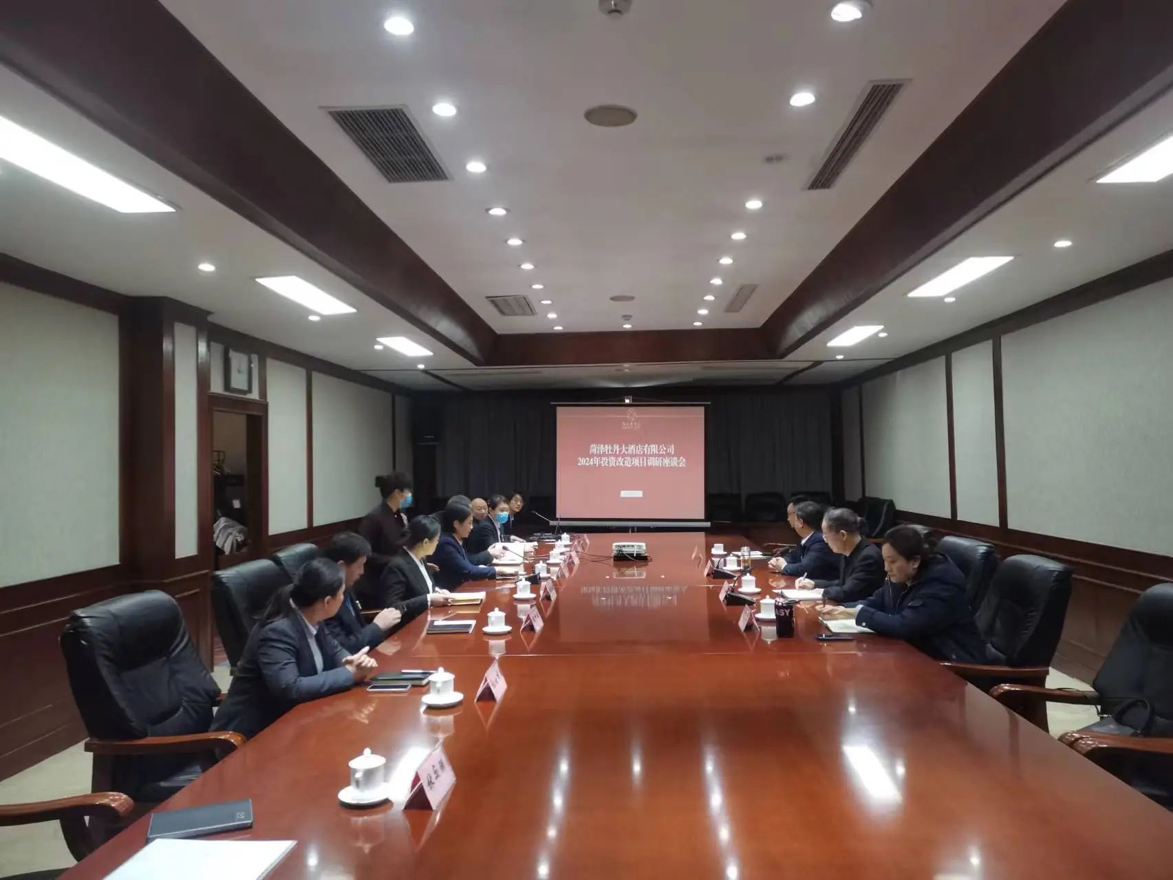 為優(yōu)化提升酒店形象,改善酒店整體環(huán)境,持續(xù)打造牡丹特色品牌,3月8日下午,牡丹大酒店召開投資預(yù)算與改造方案調(diào)研座談會(huì),菏澤投資集團(tuán)黨委書記、董事長丁萬國,黨委副書記、總經(jīng)理祝傳隨,黨委委員、副總經(jīng)理肖培飛一行到會(huì)指導(dǎo),會(huì)議由酒店總經(jīng)理李清宇主持,酒店班子及綜合管理部、工程部有關(guān)人員參加會(huì)議。