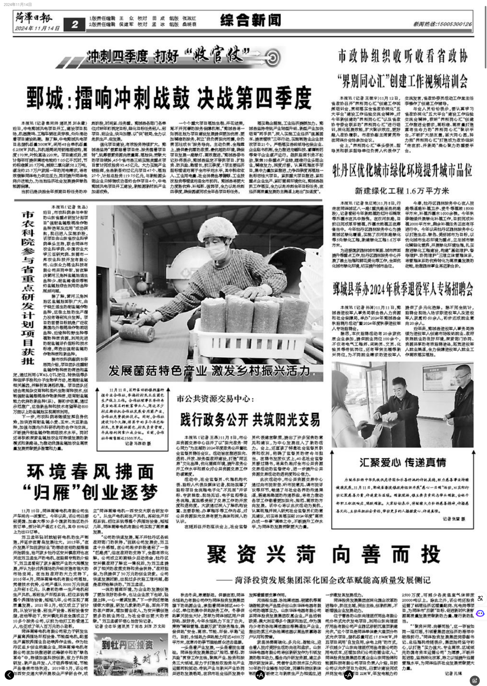 11月14日,菏澤日報刊發(fā):“聚資興菏 向善而投”菏澤投資集團深化國企改革賦能高質(zhì)量發(fā)展文章。
