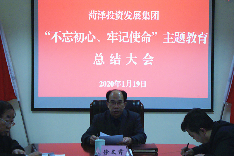 2020年1月19日下午,菏投集團(tuán)召開“不忘初心、牢記使命”主題教育總結(jié)大會(huì)。黨委副書記、總經(jīng)理丁萬國主持會(huì)議,黨委書記、董事長徐文芹出席會(huì)議并發(fā)表講話。公司領(lǐng)導(dǎo)班子成員、各企業(yè)主要負(fù)責(zé)人、公司“不忘初心、牢記使命”主題教育領(lǐng)導(dǎo)小組及辦公室全體成員,公司合署辦公機(jī)構(gòu)全體人員參加會(huì)議。