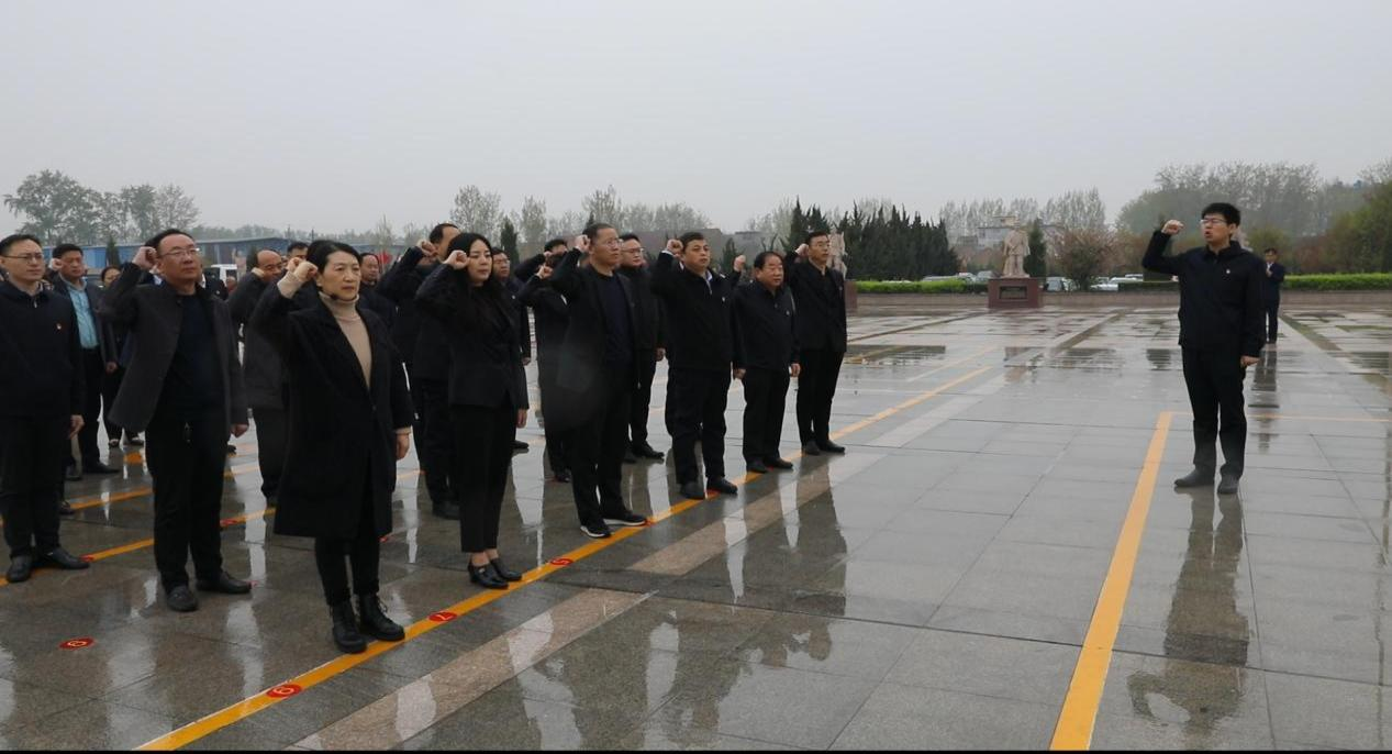 “蒼松翠柏寄哀思,綠水青山映忠魂。”上午9時許,在紀念碑前,集團公司一行40人莊嚴肅穆、整齊列隊舉行祭掃儀式。首先,由丁萬國同志和郭菏玉同志代表公司向革命先烈敬獻花籃、整理挽聯(lián),隨后全體人員恭敬地向革命先烈鞠躬并默哀,深切緬懷革命先烈,祭奠烈士的英靈。最后在領誓人的帶領下,全體莊嚴肅立、高舉右拳、字字鏗鏘,面向黨旗鄭重宣誓,重溫入黨誓詞,深深表達對革命烈士的無限敬仰。