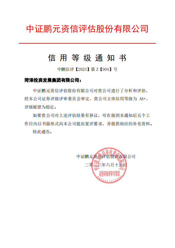 菏澤投資集團(tuán)連獲三家知名評(píng)級(jí)機(jī)構(gòu)評(píng)級(jí)認(rèn)定