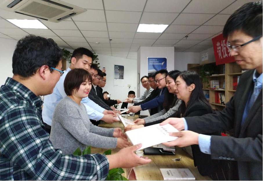 交流分享結束后,與會領導為參與交流分享的11位員工發(fā)放了《平“語”近人-習近平總書記用典》一書,鼓勵大家以本次讀書交流活動為契機,深入學習中華優(yōu)秀傳統(tǒng)文化和習近平新時代中國特色社會主義思想,用傳統(tǒng)經典文化和新思想、新理論武裝頭腦、指導工作。