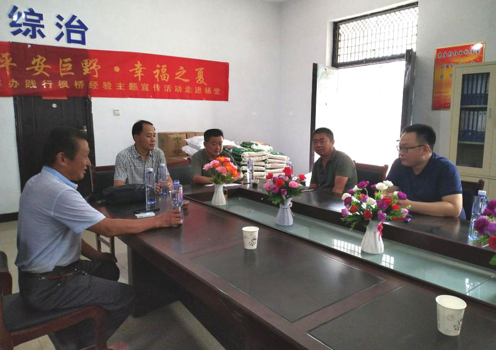 活動(dòng)中,祝傳隨一行首先與永豐街道辦事處有關(guān)領(lǐng)導(dǎo)、程莊村委會(huì)成員、楊堂村委會(huì)成員進(jìn)行了座談,了解幫包村發(fā)展現(xiàn)狀和存在的實(shí)際困難,商討下步發(fā)展計(jì)劃。隨后又來(lái)到貧困戶的家中,與他們親切交談,了解他們的身體狀況和生產(chǎn)生活情況,聽(tīng)取他們的意見(jiàn)建議,鼓勵(lì)他們克服困難,通過(guò)自身努力和社會(huì)的幫助,努力增加收入,早日過(guò)上幸福的生活。同時(shí),為他們送上米面油等節(jié)日慰問(wèn)品,致以節(jié)日的問(wèn)候與祝福。