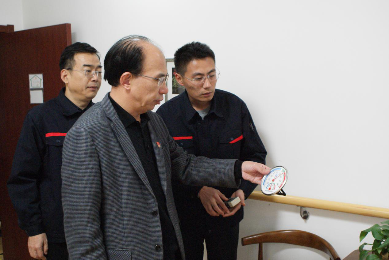 隨后,公司黨委班子走進社區(qū)養(yǎng)老院,詳細詢問了解了老人身體情況、生活狀況和供暖情況,并與老人們進行親切交談,現(xiàn)場測試養(yǎng)老院內(nèi)溫度,確保溫度適宜。同時,察看了都莊社區(qū)換熱站內(nèi)供熱設(shè)備運行情況,確保每家每戶的供暖服務(wù)持續(xù)平穩(wěn)高效。