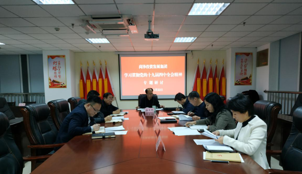 為深入學(xué)習貫徹黨的十九屆四中全會精神,扎實推進“不忘初心、牢記使命”主題教育,根據(jù)公司黨委工作安排,11月22日,菏澤投資發(fā)展集團有限公司領(lǐng)導(dǎo)班子黨員成員圍繞“學(xué)習貫徹黨的十九屆四中全會精神”這一主題進行集中研討。