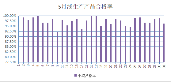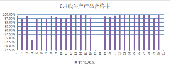 從5月份開始,注塑質(zhì)檢部對(duì)注塑產(chǎn)品實(shí)行實(shí)際品質(zhì)和質(zhì)量目標(biāo)圖表化比對(duì)方式,不僅提高了產(chǎn)品質(zhì)量的對(duì)比性,還極大的促進(jìn)了員工品質(zhì)意識(shí)的養(yǎng)成。一是異常單數(shù)量明顯下降,6月份異常單數(shù)量共100份,較5月份的182份明顯下降;二是產(chǎn)品合格率明顯提升,產(chǎn)品合格率由5月份的96.1%提高到6月份的98.6%,超出公司制定的98%的合格率標(biāo)準(zhǔn)。三是不合格原因更加清晰。人為原因占到63%,主要是毛刺修整不到位、碰傷、油污等,工藝及原料原因引起的產(chǎn)品質(zhì)量問(wèn)題占37%。