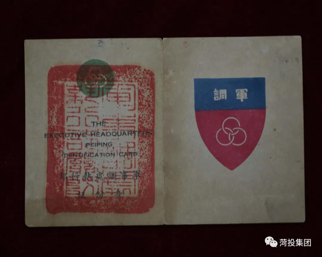 形態(tài)特征:對折式,紙質(zhì)。封面為“軍事調(diào)處執(zhí)行部官防”篆書朱文印及中英文“軍事調(diào)處執(zhí)行部身份證”字樣;封二貼有黃鎮(zhèn)同志二寸黑白照片一張;封三印有姓名、階級、職務(wù)、簽字、發(fā)證日期、編號等;封底為盾形軍調(diào)圖案,上有三環(huán)標(biāo)志和“軍調(diào)”字樣。