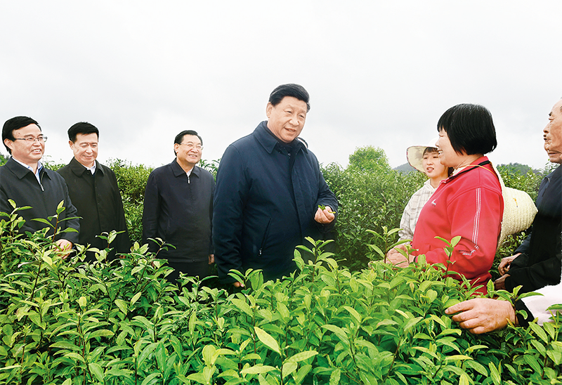 2020年4月20日至23日,中共中央總書記、國家主席、中央軍委主席習(xí)近平在陜西考察。這是4月21日,習(xí)近平在安康市平利縣老縣鎮(zhèn)蔣家坪村女媧鳳凰茶業(yè)現(xiàn)代示范園區(qū),同茶農(nóng)們親切交談。