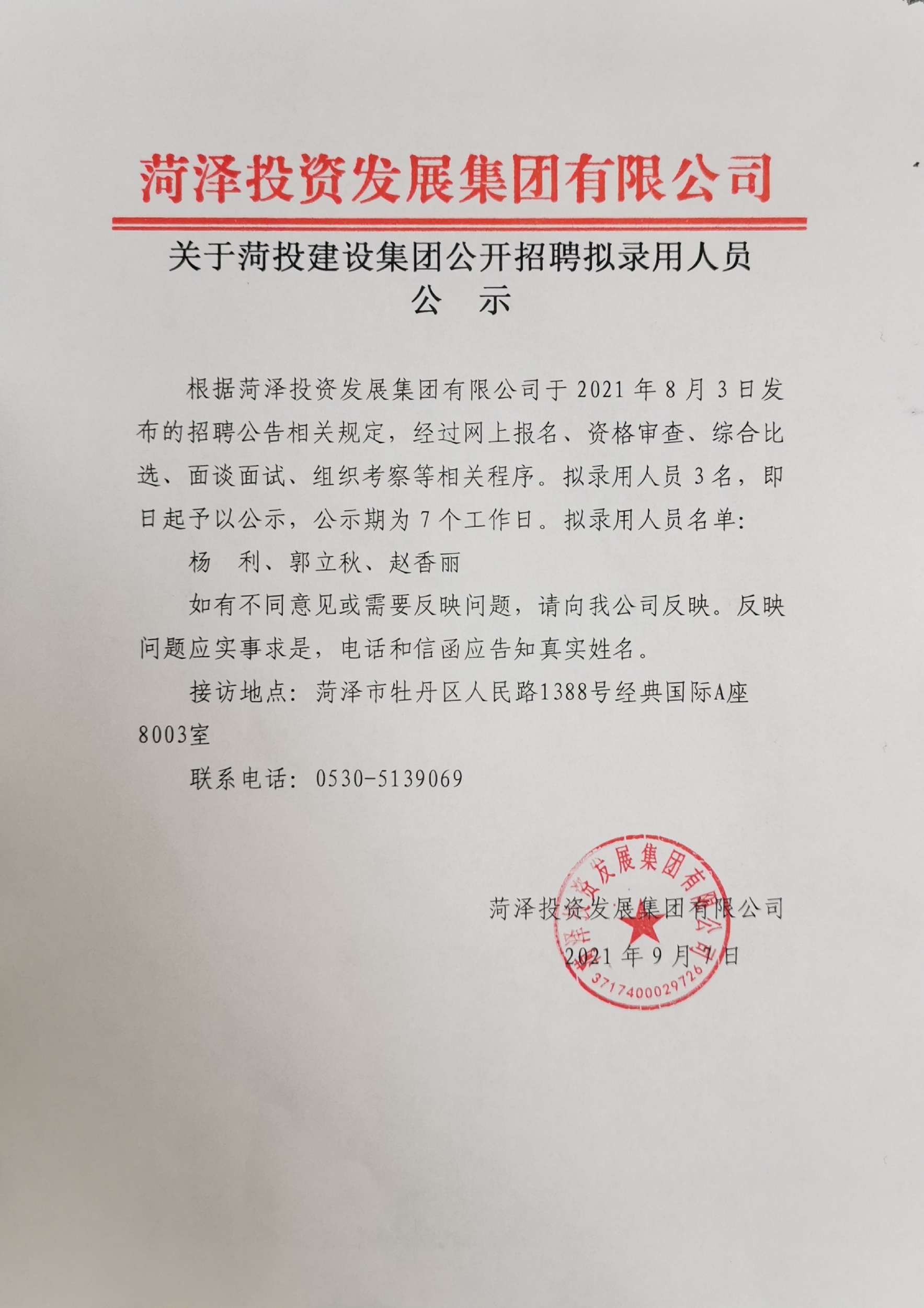 關(guān)于菏投建設(shè)集團公開招聘擬錄用人員公示